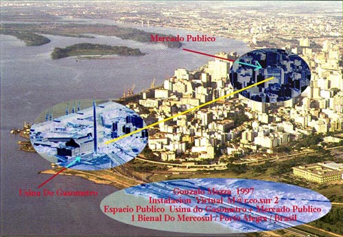 uma obra virtual dentro da Usina do Gasômetro e do Mercado Público , y